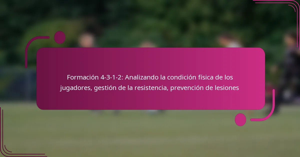 La formación 4-3-1-2 es un esquema táctico en el fútbol que enfatiza el control del mediocampo y un enfoque equilibrado entre la defensa y el ataque. Para prosperar en esta formación, los jugadores deben centrarse en la condición física, la gestión de la resistencia y la prevención de lesiones, asegurándose de poder cumplir con las demandas de los roles ofensivos y defensivos de manera efectiva.