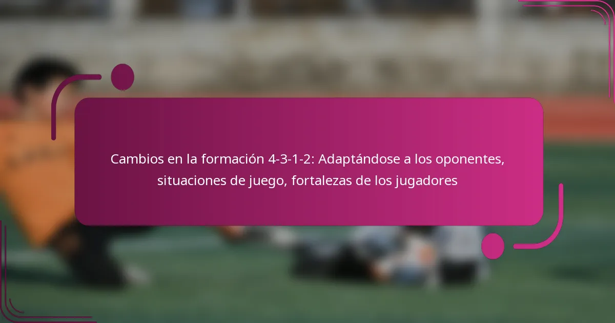 La formación 4-3-1-2 puede adaptarse eficazmente a varios oponentes al analizar sus fortalezas y debilidades, ajustar los roles de los jugadores y cambiar la forma de la formación según sea necesario. Esta flexibilidad permite a los equipos optimizar sus estrategias basándose en los desafíos específicos que presentan diferentes situaciones de partido.