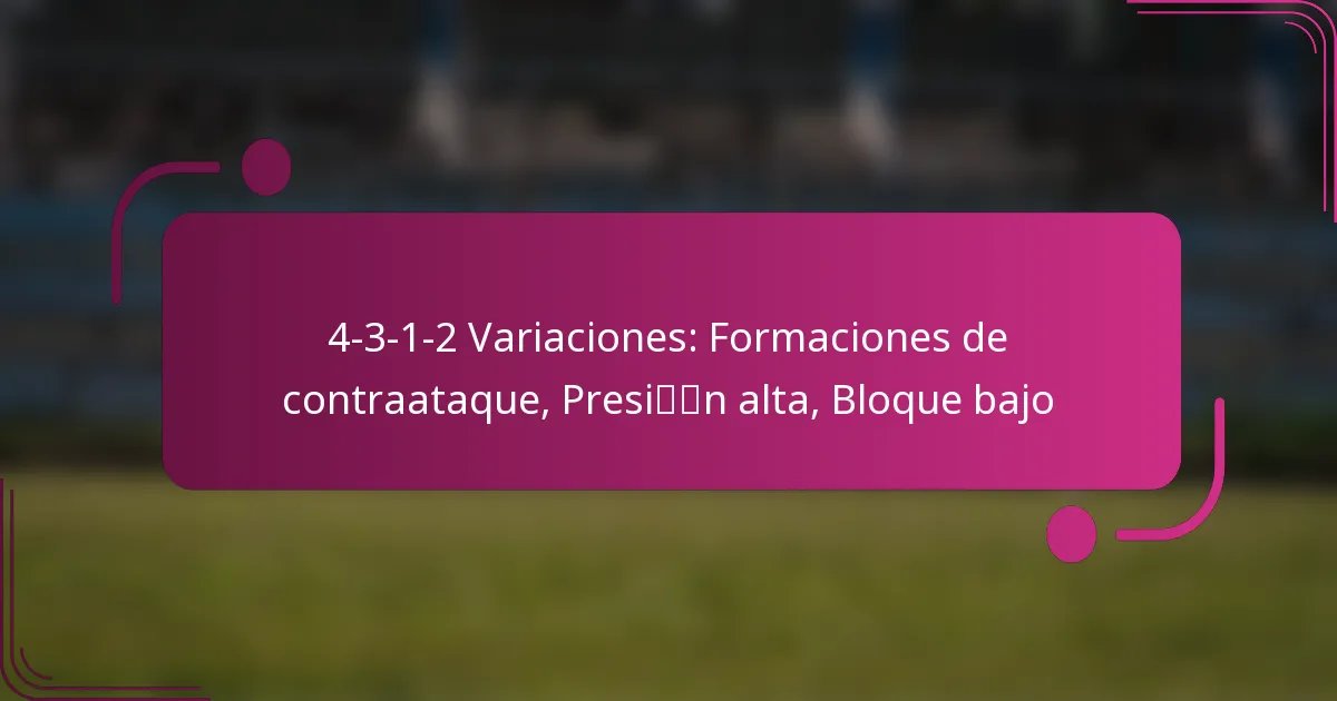 La formación 4-3-1-2 es un esquema táctico en el fútbol que cuenta con cuatro defensores, tres mediocampistas, un mediocampista ofensivo y dos delanteros. Esta formación no solo enfatiza una fuerte presencia en el mediocampo, sino que también permite adaptabilidad en varias estrategias, como formaciones de contraataque, presión alta y bloqueo bajo. Cada variación aprovecha las fortalezas inherentes de la formación para explotar las debilidades del oponente y mejorar el rendimiento general del equipo.